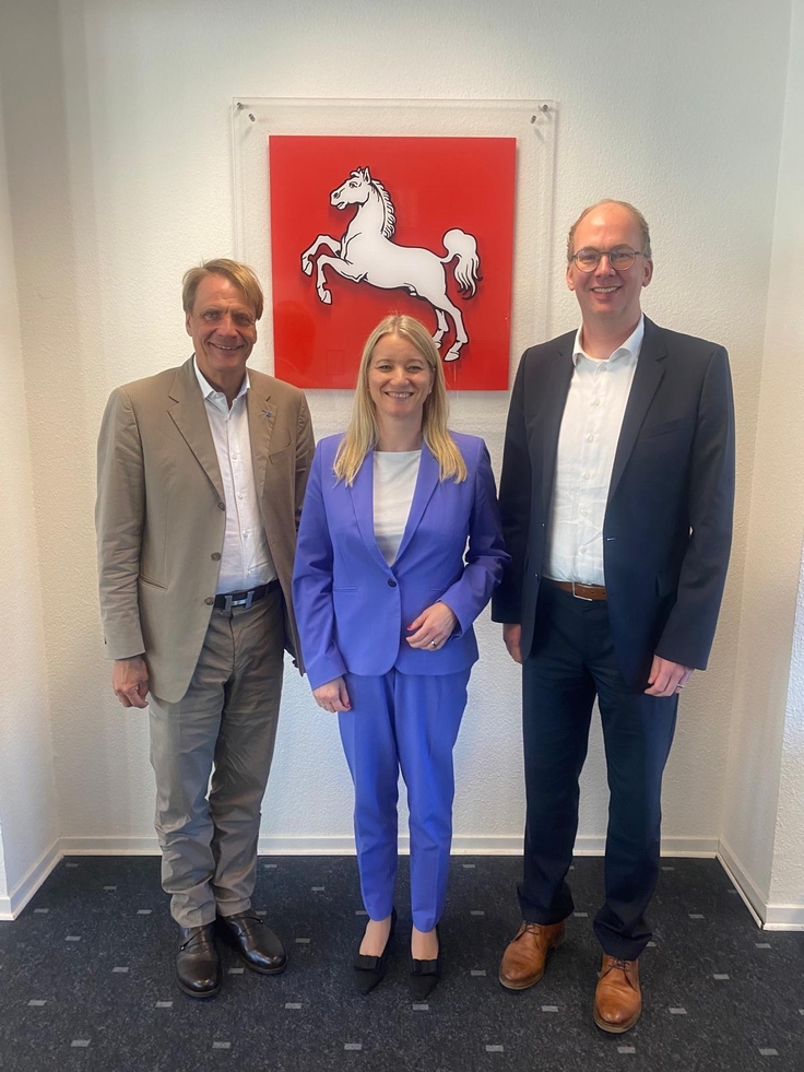 Heute besuchte die Niedersächsische Justizministerin Dr. Kathrin Wahlmann im Rahmen ihrer Bereisung niedersächsischer Justizstandorte das Verwaltungsgericht Osnabrück. Der Präsident des Verwaltungsgerichts Osnabrück, Prof. Dr. Gert-Armin Neuhäuser, hieß die Ministerin willkommen.